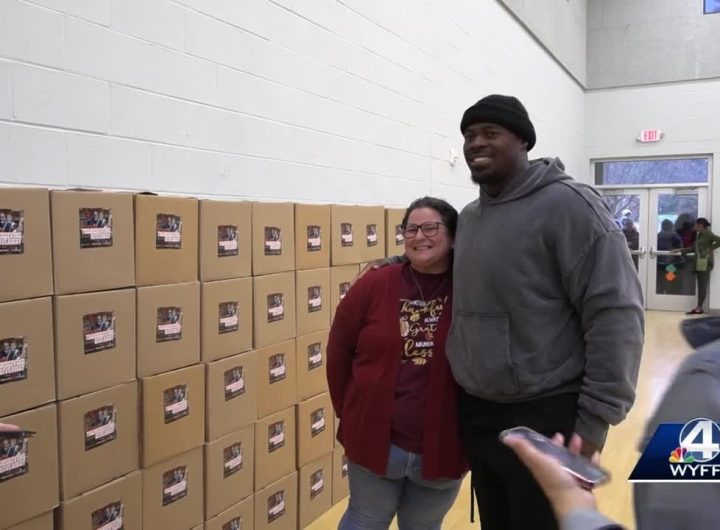 Carolina Panthers defensive end Deshawn Williams hosted a Thanksgiving giveaway on Tuesday at the Littlejohn Community Center...