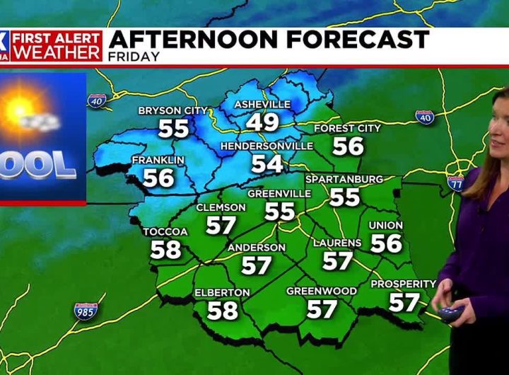 Highs in the 50s Friday, then dropping into the 40s for the weekend. Rain chances increase late...